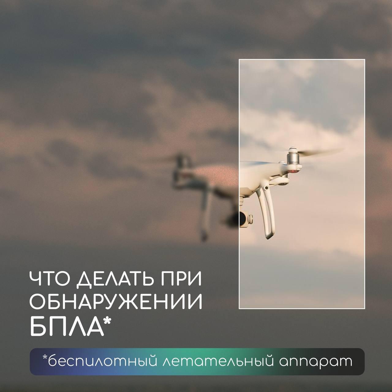 🚨 Что делать при обнаружении БПЛА?Беспилотники могут появляться вблизи населённых пунктов, поэтому важно знать, как правильно действовать при их обнаружении, чтобы уберечь себя и окружающих.