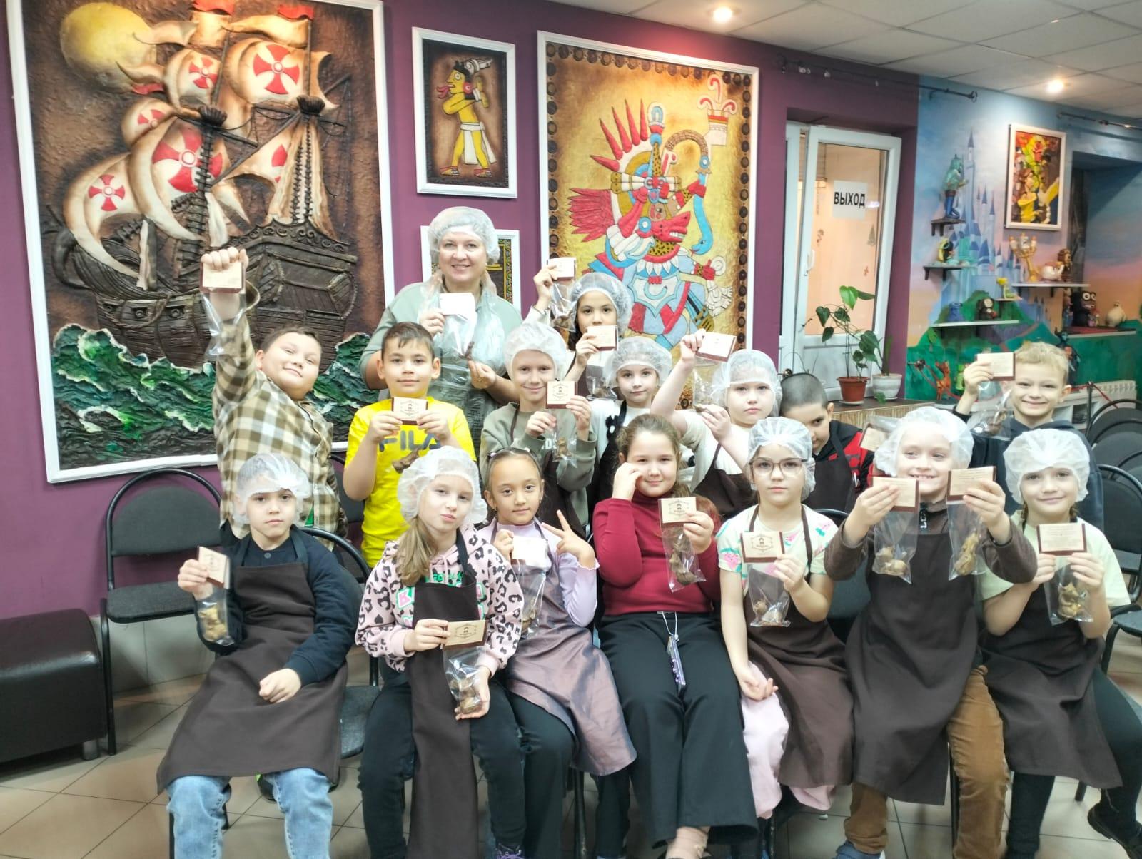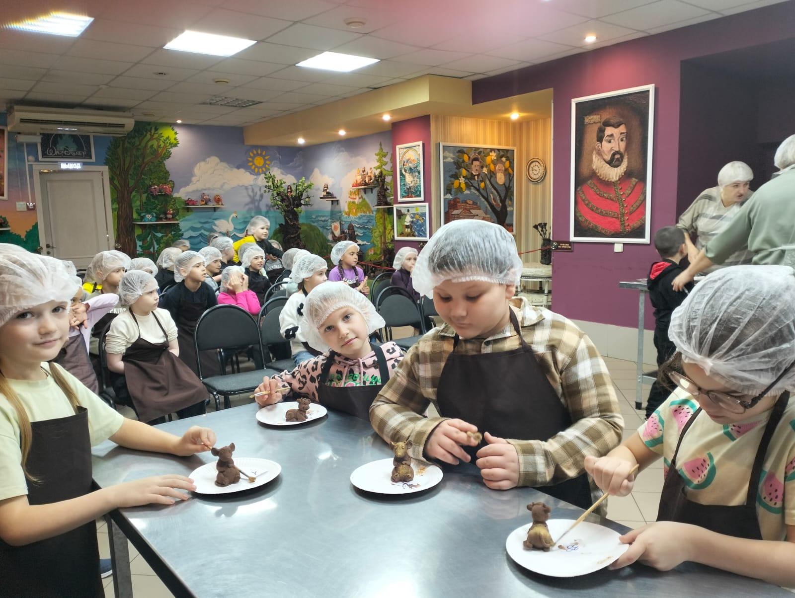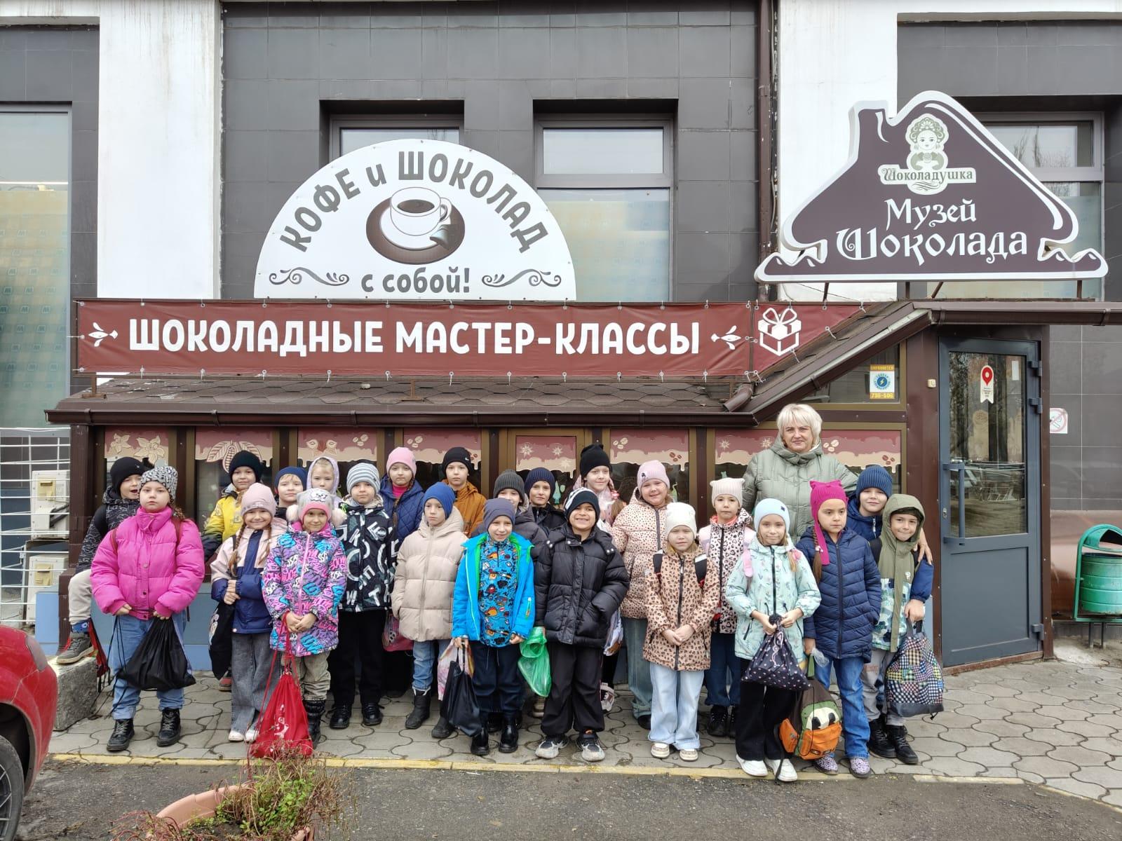 На осенних каникулах 18.11.2025 г учащиеся 1А и 1В классов посетили Шоколадную фабрику "Шоколадушка". Ребята познакомились с историей шоколада, изготовили и продегустировали его,получив позитивные эмоции и хорошее настроение.